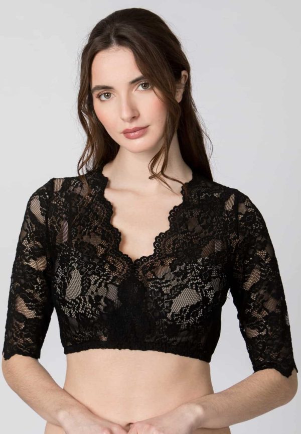 Dirndlbluse Alaya von Stockerpoint in creme. Diese hochwertige Damenbluse verzaubert mit zahlreichen liebevollen Details und gehört zu unseren absoluten Lieblingsstücken. Der hochwertige Spitzenstoff prägt dieses wunderschöne Modell. Der V-Ausschnitt ist mit einer Bogenkante veredelt und umschmeichelt gekonnt das Dekolleté. Die kurzen Ärmel sorgen für einen zusätzlichen Akzent und runden das Design perfekt ab.
