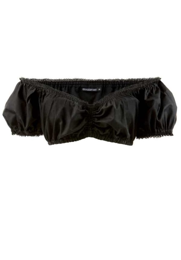 Dirndlbluse Georgette von Stockerpoint. Diese raffinierte Damenbluse kann im Carmen Look getragen werden und überzeugt durch ihre hervorragende Passform. Sie ist mit einer feinen Spitze verziert und umschmeichelt gekonnt das Dekolleté. Durch den Tunnelzug in der vorderen Mitte kann die Weite am Ausschnitt reguliert werden und passt sich somit perfekt an das Mieder an. Die kleinen Spitzen am Ärmelbund sorgen für einen zusätzlichen Akzent und runden das Design perfekt ab.|