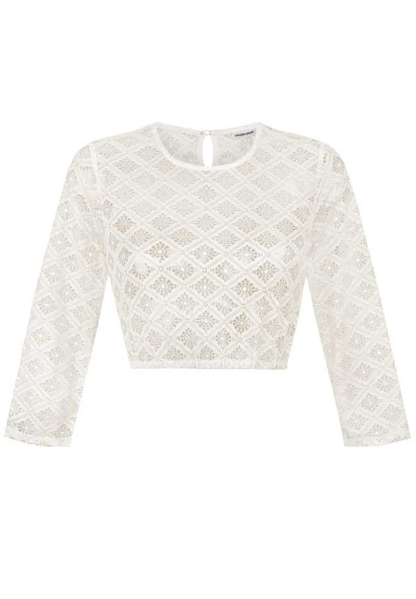 - Dirndlbluse Holly von Stockerpoint mit trachtigem Muster aus weißer Spitze und Karo Design