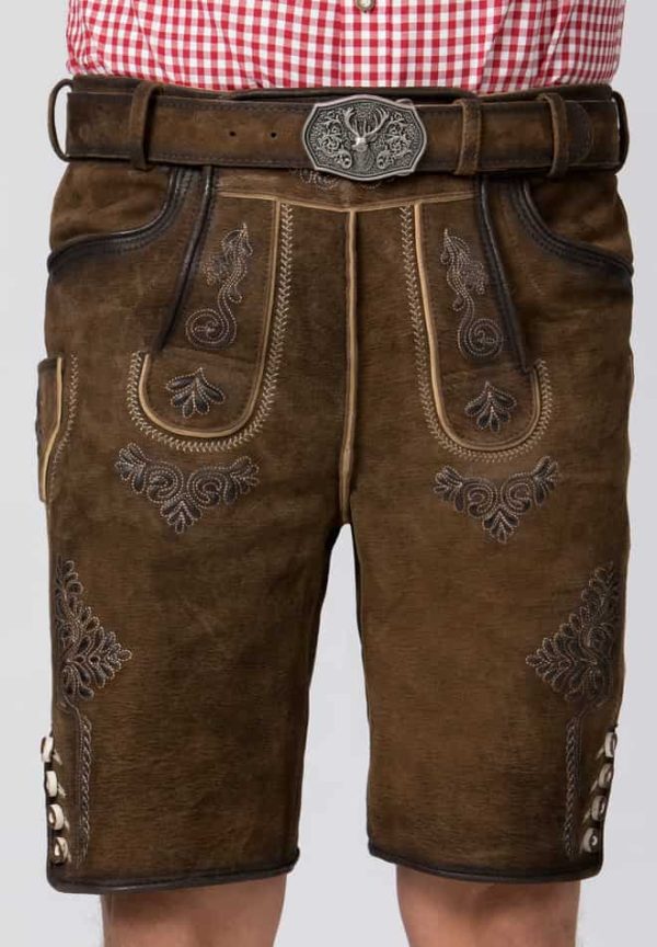 - Hochwertiges Wildbockleder in Hirschoptik für einen authentischen Trachten-Look