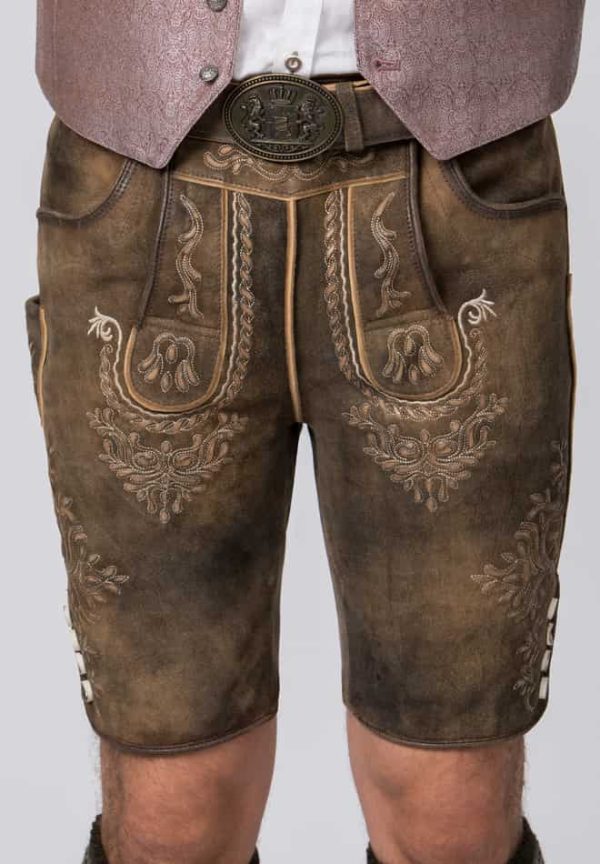 Kurze Lederhosen | Herren Stockerpoint Trachtenlederhose Logan Kiesel Gespeckt