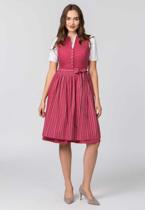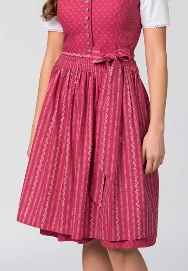 - Schürze: 66 cm – 100% Baumwolle. Das Schürzenband rundet das Design gekonnt ab und verstärkt die traditionelle Ausstrahlung des Dirndls.