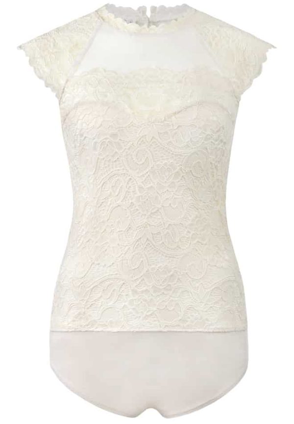 Spitzenbody Romy von Stockerpoint. Dieser hochgeschlossene Trachtenbody aus edlem Spitzenstoff ist mit einem halbtransparenten Stoff unterlegt und passt sich perfekt deiner Figur an. Der Stehkragen ist mit einer feinen Spitze veredelt und umschmeichelt gekonnt das Dekolleté. Die kurzen Ärmel sorgen für einen zusätzlichen Akzent und runden das Design perfekt ab.