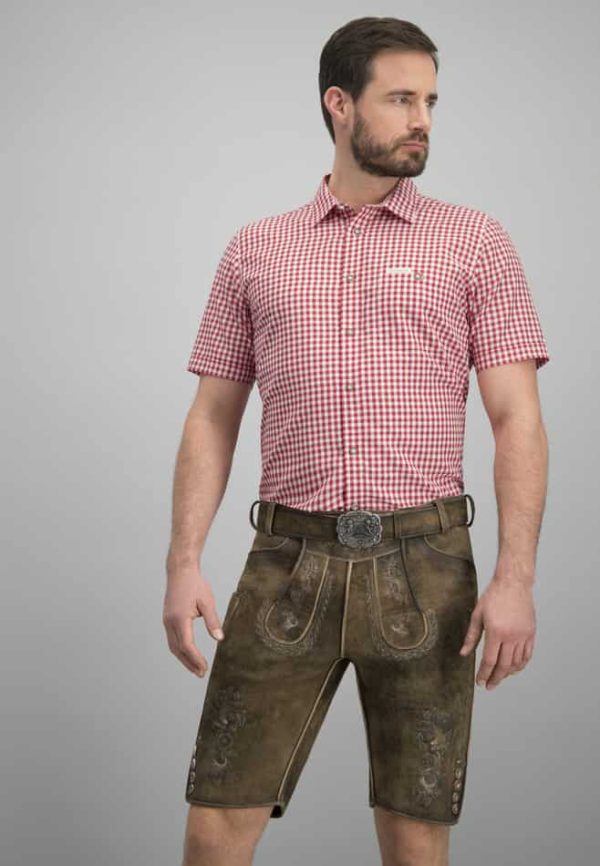 Trachtenhemd Renko von Stockerpoint Classics. Das Kurzarmhemd aus angenehmer Baumwoll-Qualität in Karo-Optik ist die perfekte Ergänzung zum traditionellen Trachtenoutfit. Dieses hochwertige Hemd ist perfekt kombinierbar zu deiner Lieblingshose und ist unentbehrlich als Kombipartner zu unseren Trachtenwesten und Trachtenjacken. Das Modell ist in „Comfort Fit“ geschnitten und passt sich jeder Körperform perfekt an. Die trachtigen Hornknöpfe verleihen eine besondere Note und prägen den traditionellen Stil.