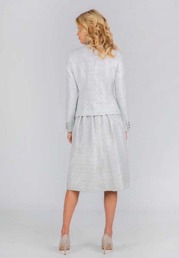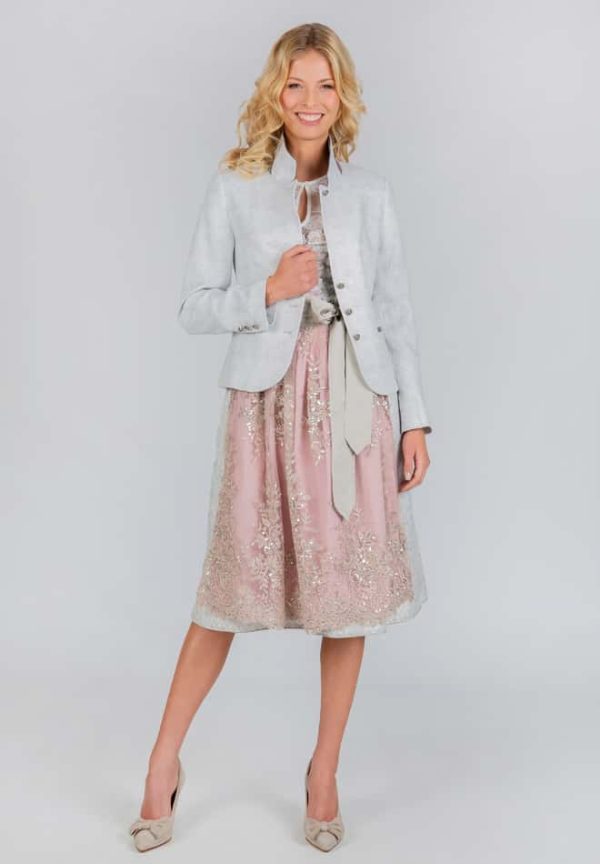 Trachtenjacke Felicia von Bergfeuer in hellgrau. Das edle Modell überzeugt durch die hochwertige Leinen Qualität. Besonderes Augenmerk liegt bei der Kragenvariante, die man als Stehkragen und auch wahlweise als Kentkragen tragen kann. Die Jacke lässt sich zu festlichen Anlässen, oder im Alltag auch zur Jeans kombinieren und verleiht Ihrem Outfit eine besondere Note. Spüre die Designer Hand von Stockerpoint und präge deinen ganz besonderen Stil.