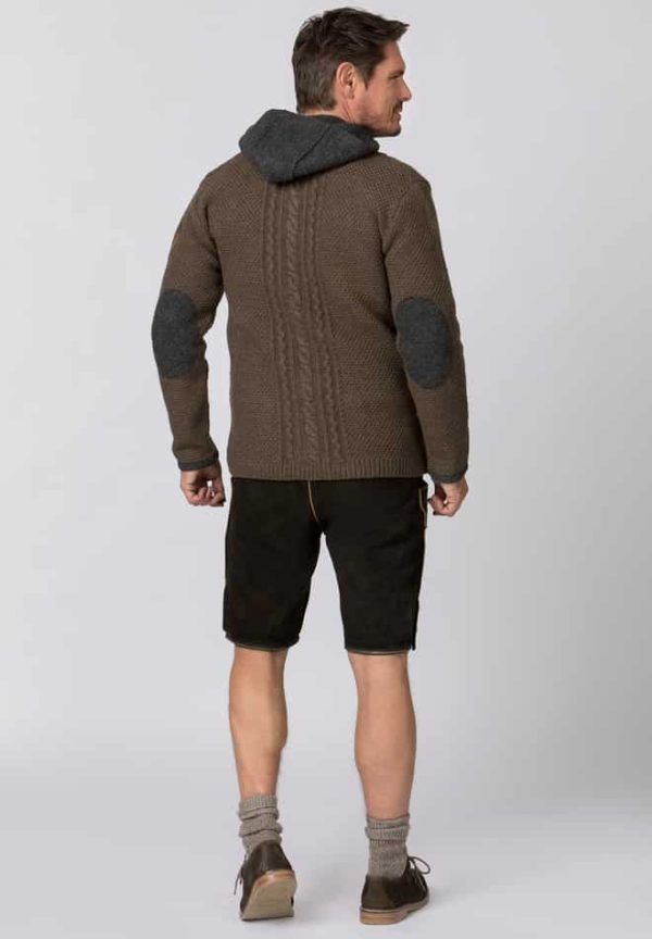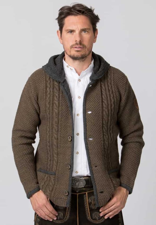 Trachten-Strickjacke Milan von Stockerpoint Classics. Die Kapuzenjacke erhält durch die melierte, hochwertige Wollmischung traditionelle Akzente. Die rustikale, markante Strickoptik mit Zopfmuster und die abnehmbare Lodenkapuze runden das Gesamtbild gekonnt ab. Hochwertige Ärmel-Patches und rustikale Hornknöpfe setzen eine klassische Note. Die Eingriffstaschen und die Kanten sind harmonisch mit einem kontrastigen Lodenstoff abgesetzt. Die klassische, gerade Schnittführung garantiert eine sehr gute Passform und einen angenehmen Tragekomfort. Der modische Hoodie begeistert zur traditionellen Lederhose ebenso wie zur Jeans.