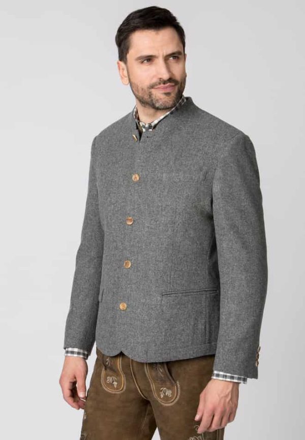 Trachtensakko Xaver von Stockerpoint Classics verkörpert ein harmonisches Zusammenspiel aus Tradition und zeitlosem Design. Gefertigt aus hochwertigem, melierten Lodenstoff, besticht dieser Trachtenjanker durch seine unvergleichliche Qualität. Sein klassischer, trendiger Schnitt gewährleistet nicht nur eine hervorragende Passform, sondern auch ein Höchstmaß an Komfort. Der traditionelle Stehkragen betont das markante Design dieses Meisterstücks. Die Verwendung traditioneller Hornknöpfe vollendet das edle Erscheinungsbild und unterstreicht die Liebe zum Detail. Dieses Sakko ist der ideale Begleiter zu unseren Lederhosen und verleiht Ihrer Garderobe eine zeitlose Eleganz.|