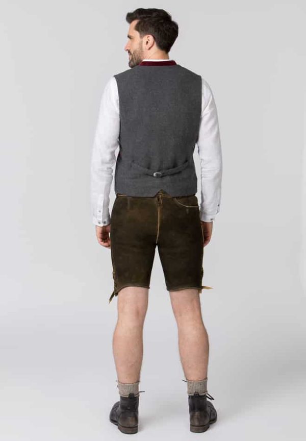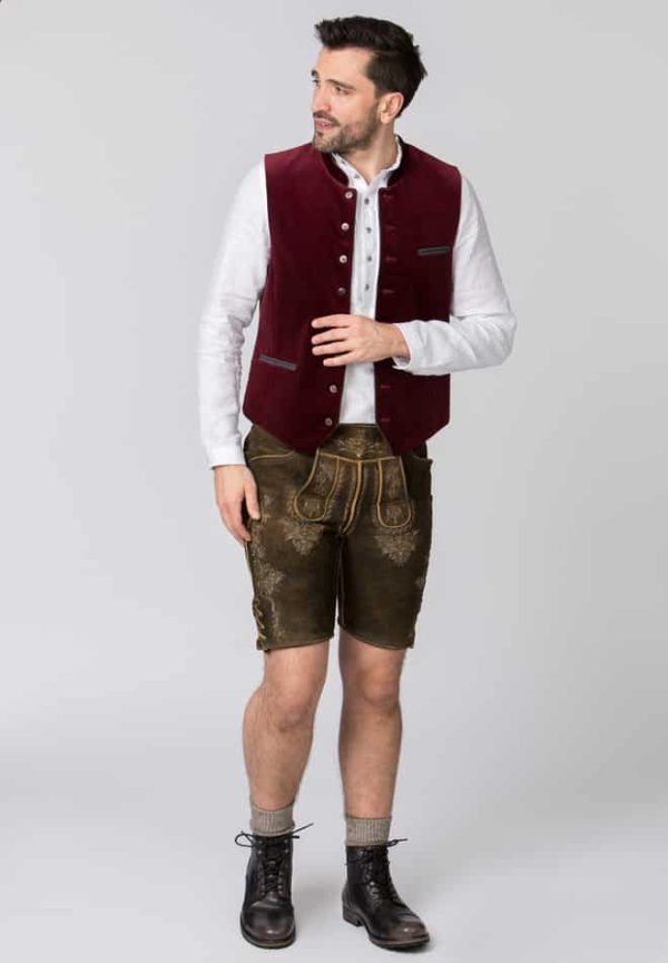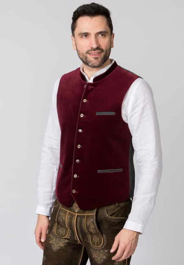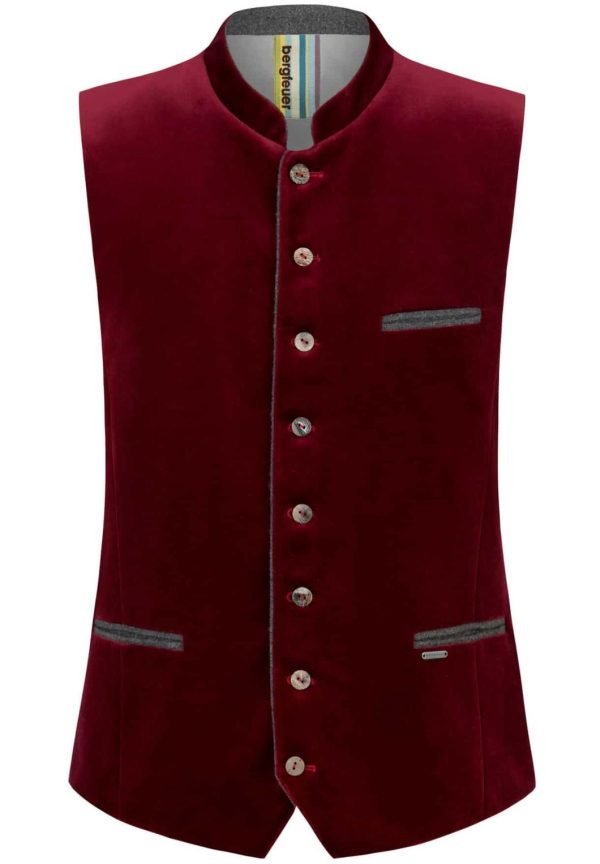Die Trachtenweste Tozzi von Bergfeuer präsentiert sich als zeitloser Klassiker. Hergestellt aus hochwertigem Baumwollsamt, verkörpert sie traditionelle Eleganz. Der moderne Stehkragen, mit seiner zurückhaltenden Ausführung, sorgt für ein harmonisches Erscheinungsbild. Farblich abgestimmte Paspeln unterstreichen das traditionelle Design. Die klassische, gerade Schnittführung gewährleistet eine erstklassige Passform und ein angenehmes Tragegefühl. Der Rücken besteht aus hochwertigem Lodenstoff und ist durch einen Riegel verstellbar. Die erstklassige Verarbeitung und Ausstrahlung dieser Trachtenweste werden durch die meisterhaft eingearbeiteten echten Hornknöpfe stilvoll ergänzt und betont.|